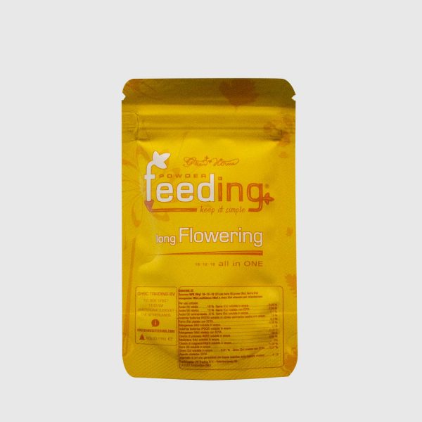Long Flowering de Green House Feeding est un engrais minéral en poudre, spécialement formulé pour les plantes à floraison longue (9 semaines ou plus), comme les variétés Sativa ou hybrides à dominance Sativa. Grâce à sa formule « tout-en-un » (NPK 18-12-18), cet engrais fournit une nutrition complète et équilibrée tout au long du cycle de vie de la plante, de la croissance à la floraison, sans besoin d’ajouter d’autres produits.