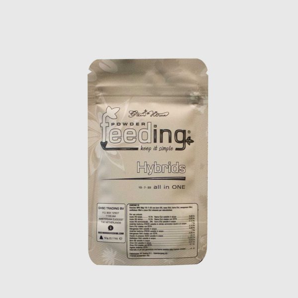 Hybrids de Green House Feeding est un engrais minéral en poudre, spécialement formulé pour les plantes hybrides (40% à 60% Indica). Grâce à sa , cet engrais fournit une nutrition complète et équilibrée tout au long du cycle de vie de la plante, de la croissance à la floraison, sans besoin d’ajouter d’autres produits.
